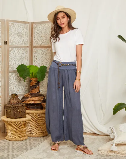 Pantalones Hilona índigo 100% lino