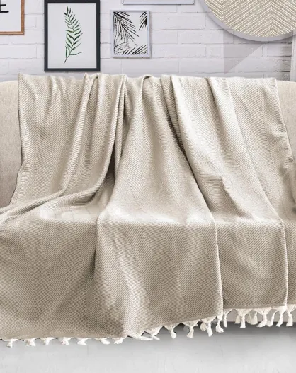 Tela escocesa de microfibra beige - 150x200 cm