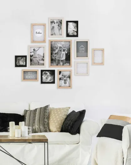 Marco para 12 fotos beige/negro/beige - 22,5 x 27,5 cm