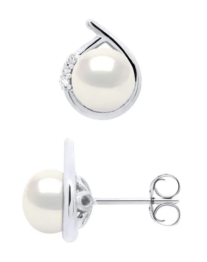 Pendientes Entourage de oro blanco, diamantes de 0,06 quilates y perlas cultivadas en agua dulce con botones blancos naturales