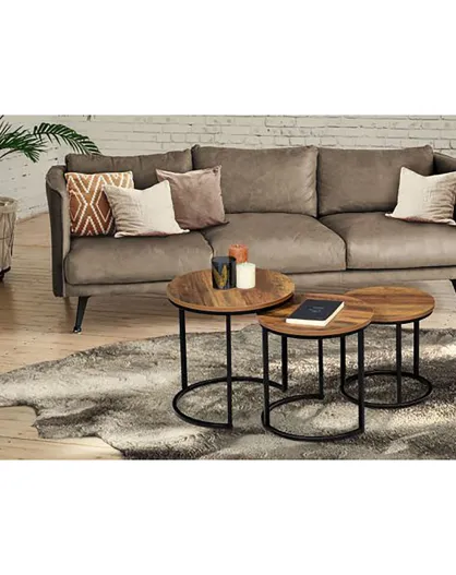 3 mesas de café redondas anidadas de madera y negro Elize, D.35/40/45 cm