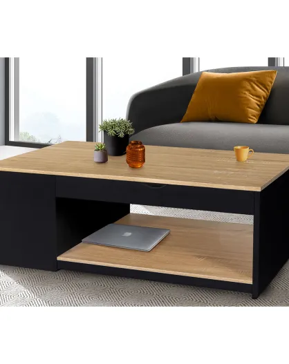 Mesita elevable Elina de madera/negro con baúl - 110x60x45 cm