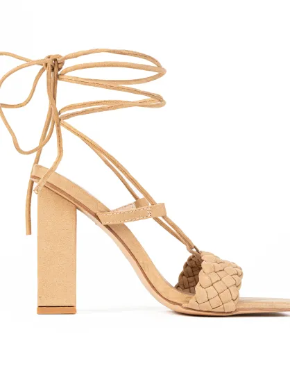 Sandalias Scarlett de piel de terciopelo camel - tacón de 8.5 cm