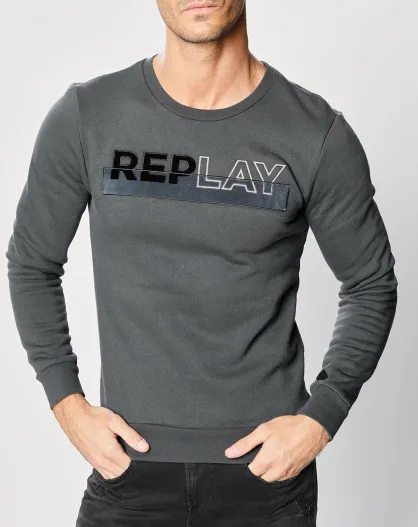 Sudadera gris con logo bimaterial