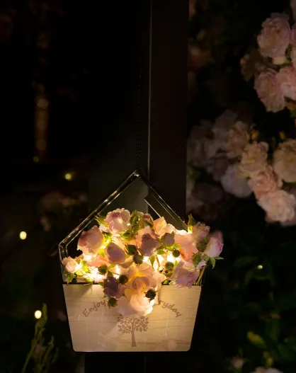 30 luces LED con energía solar para decoración con flores blancas, 16 x 8,5 x 42 cm