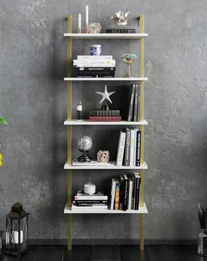 Librería plegable blanca/dorada - 60x174x22 cm