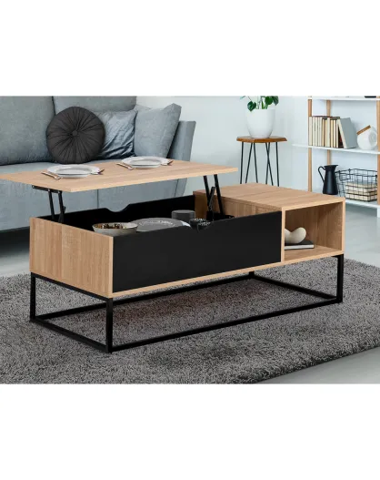Mesita elevable Memphis con almacenamiento de madera y negro, 110 x 55 x 44,5 cm
