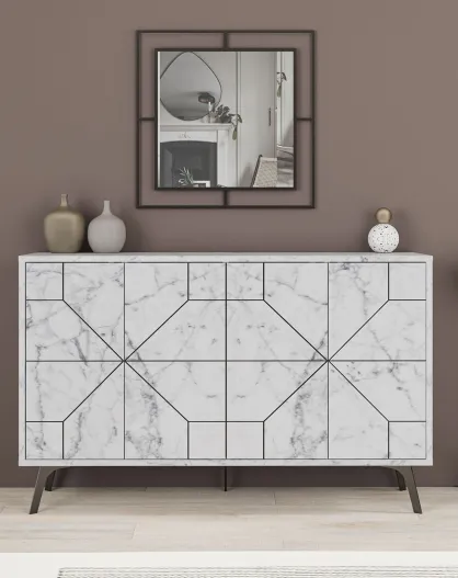 Aparador Kiev de nogal y mármol blanco - 160x78x35 cm