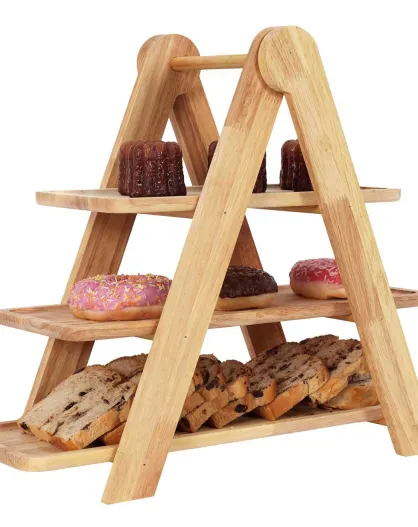 Bandeja de presentación marrón de 3 niveles, 45,7 x 37,5 x 14,3 cm
