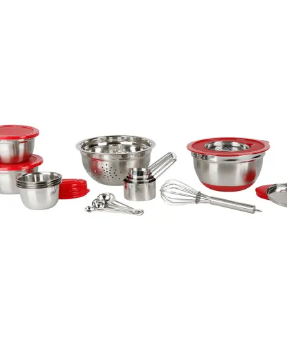 Utensilios de preparación de cocina en acero inoxidable y plástico gris - 27 piezas