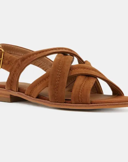Sandalias cruzadas de terciopelo de piel de camello