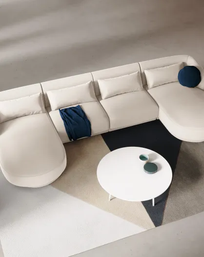 Sofá panorámico Velvet Tulum de 5 plazas beige claro - 334x155x74 cm