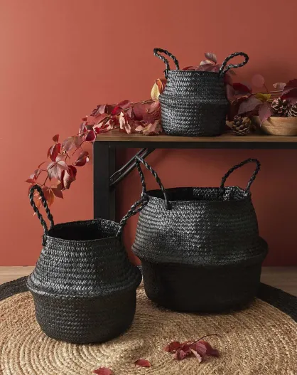 3 cestas redondeadas de pastos marinos negros