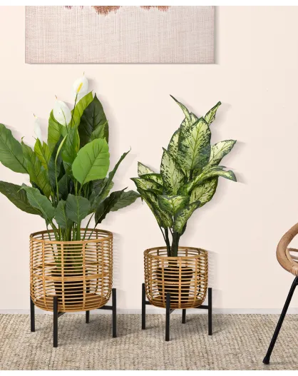 2 macetas doradas y negras