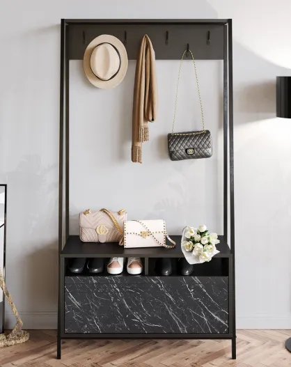 Armario Devin hall negro/jaspeado - 94x180x35,3 cm