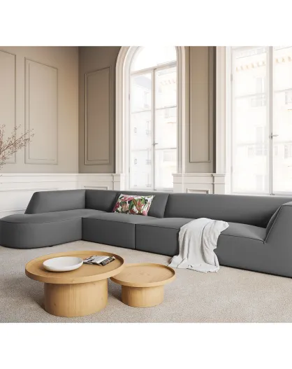 Sofá modular Tropea de 4 plazas de terciopelo gris oscuro - 282x188x63 cm