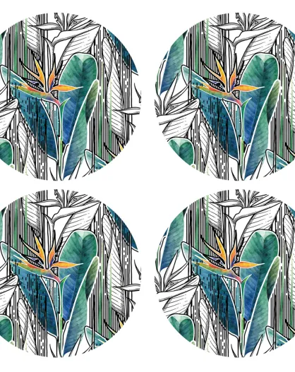 4 manteles individuales redondos Fleur de Paradis multicolores - D.40 cm