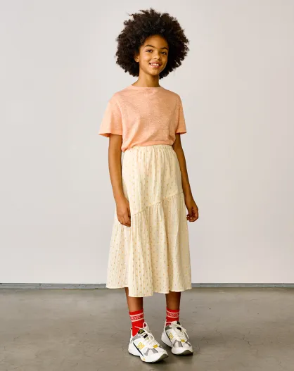 Falda media en mezcla de algodón Alicia estampada caqui/amarillo