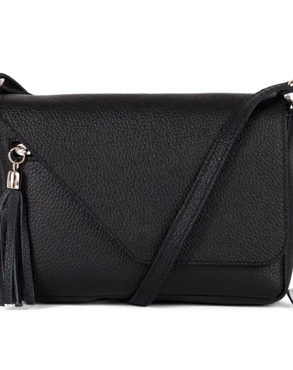 Bandolera Lola de piel negra - 24x18x6 cm