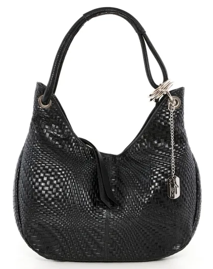Bandolera Concetta de piel negra - 38x34x10 cm