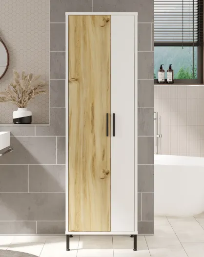 Armario multiusos blanco y nogal - 50,4x165x35,7 cm