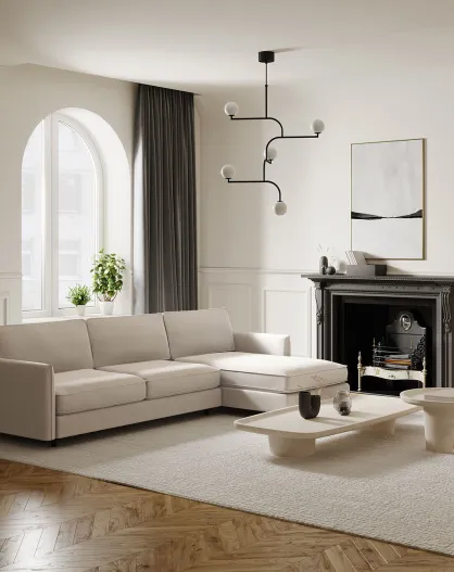 Sofá izquierdo angular Isak en beige arena - 262x92x85