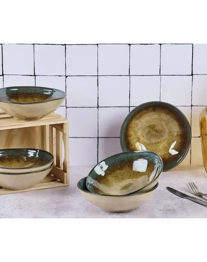 6 cuencos de gres Island, color caqui/azul, 100 cl