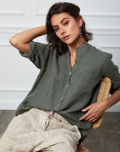 Top Helly khaki 100% lino