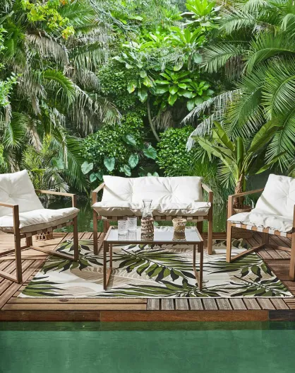 Muebles de jardín Cagliari - 4 piezas blanco/marrón - 118x69x73 cm