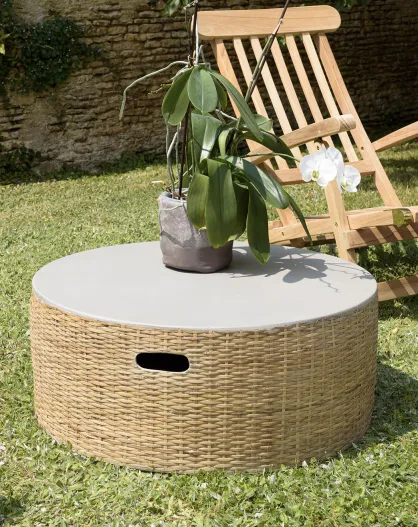 Mesita auxiliar Delia natural con almacenamiento - D.43x34 cm