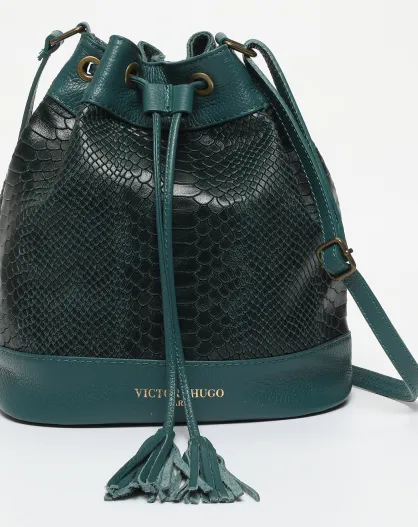 Bolso bombonera de piel verde cereza - 33x28x14 cm
