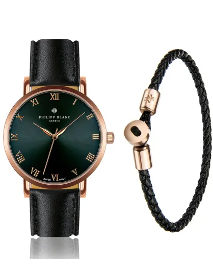 Set de reloj Bern de cuero negro con correa