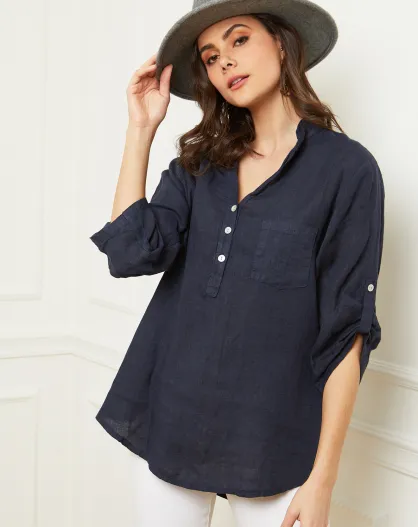 Blusa azul marino Bjorg 100% lino