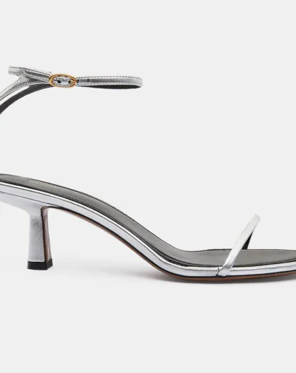 Sandalias de piel Pia plateadas, tacón de 3 cm