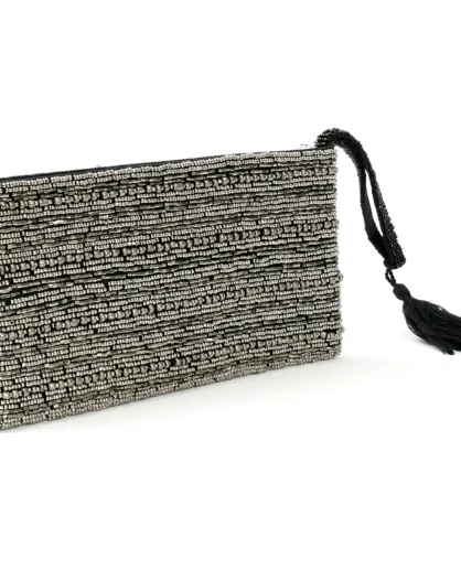 bolsa de perlas plateadas y negras - 23x12x2 cm