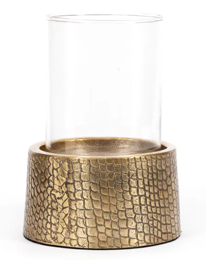 Portavelas de latón cocodrilo - 14x14x22 cm