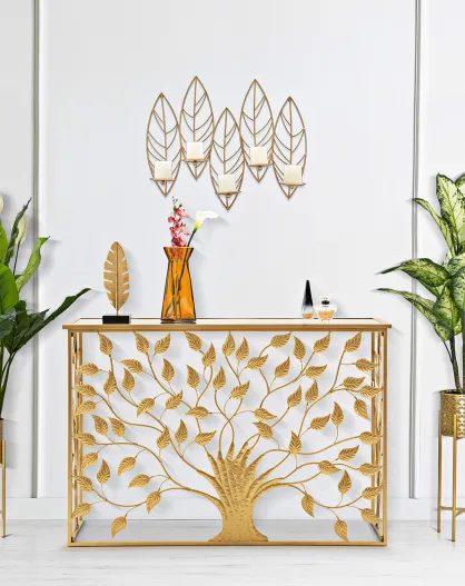 Portavelas de pared en forma de hoja dorada - 66x14x56 cm