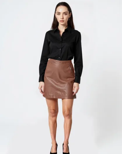 Falda corta Leita de piel coñac