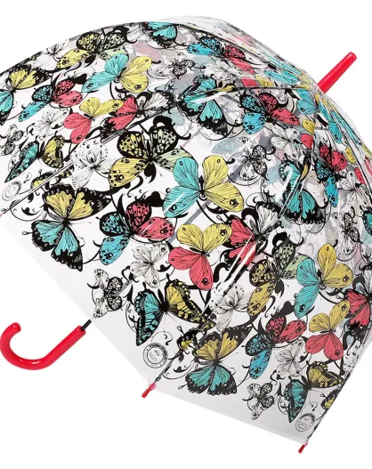 Paraguas con forma de campana recta, diseño de mariposa con mango rojo transparente