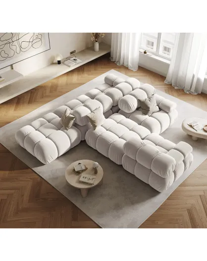 Puf Tropea de terciopelo beige claro - 94x94x39 cm