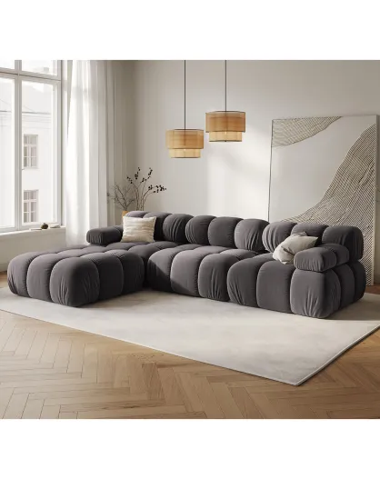 Sofá modular Tropea de 4 plazas de terciopelo gris oscuro - 282x188x63 cm