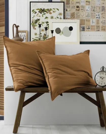 2 fundas de almohada Dili en doble gasa de algodón tabaco
