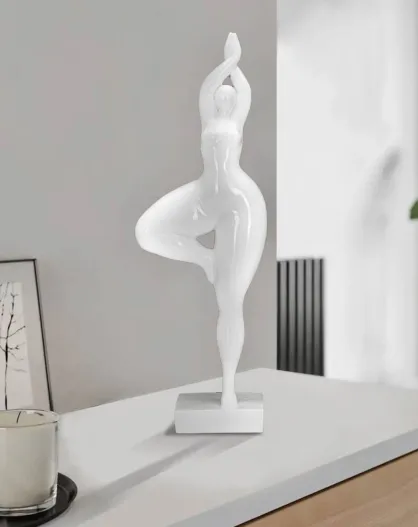 Estatua decorativa de yoga femenina blanca - 45,8 x 16 x 9 cm
