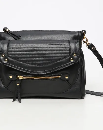 Bandolera Felix de piel negra - 26x19x10 cm