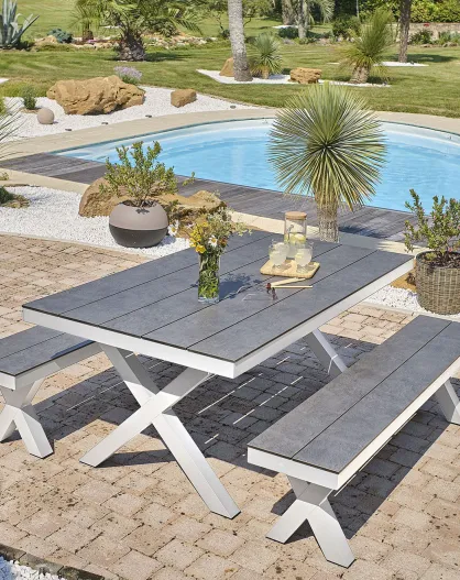 Set de mesa de jardín ANNECY de aluminio con tapa de HPL blanca