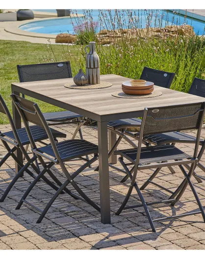 Mesa BOSTON + 6 sillas de jardín plegables gris antracita