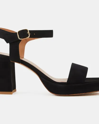 Sandalias negras con tacón de piel - Tacón de 7,5 cm