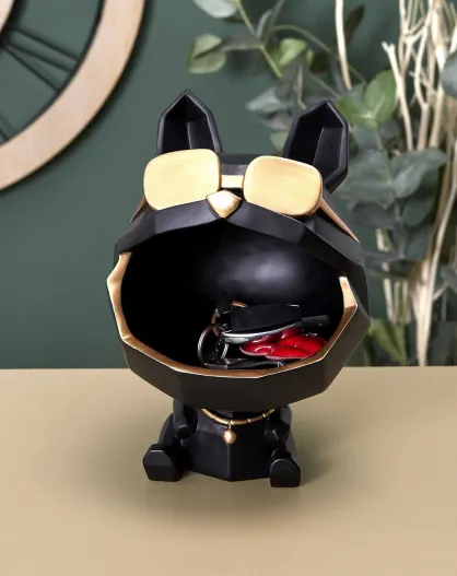 Bolsa decorativa Bulldog negro/dorado - 18x21x21 cm