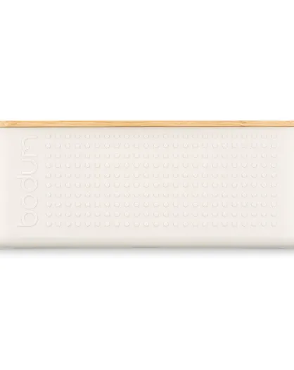 Panera pequeña con tapa de bambú Bistro blanca, 19,4 x 29,4 x 10,7 cm