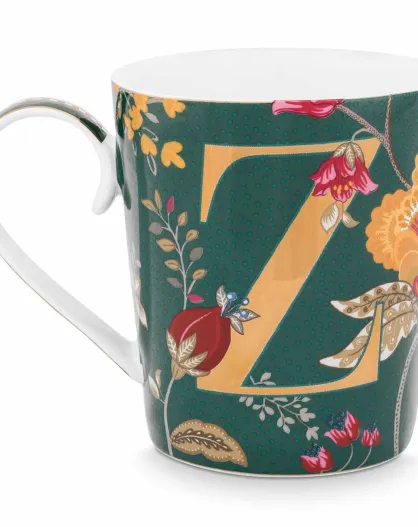 Taza Alphabet Floral Fantasy Z de porcelana verde, 350 ml